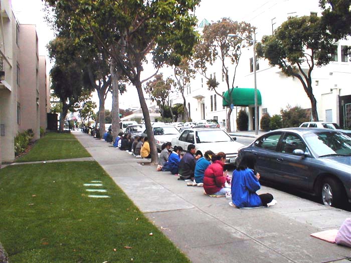 我们认识到:慈悲众生应该是每个大法弟子在参与正法中的言谈、举止的立足点和出发点。在北加州地区,有时参加领馆前发正念的人数多达300余人,如何在有限的空间,井然有序地做好我们该做的,同时为周围的住家着想,也是我们当地大法弟子应时时注意的。