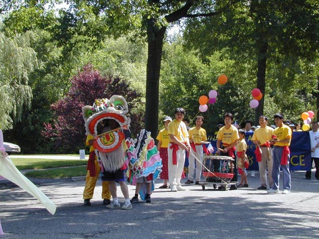 游行中,学员们不仅为市民们表演了优美的法轮功法,而且还为市民们带来了富有中国传统民族特色的舞狮和仙女舞。学员们优美的功法表演不时地赢得了市民们的阵阵掌声,而多姿多彩的仙女舞以及活灵活现的舞狮也给市民们留下了难忘的印象。游行期间学员们还向路边观看游行的市民分发了讲清真相的报纸,使许多居民有机会了解到中国政府残酷迫害法轮功的真相。