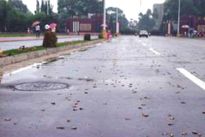 【明慧网2002年7月11日】2002年7月10日清晨,大批蝗虫集结在通往内蒙古自治区党委机关大门的1公里长的主干道上,直到发稿时(17时)路两旁和大片草坪上,扑捉蝗虫的妇女、老人、学童依然如云如织。扑蝗者说,一发生蝗虫,就往党委大院飞。(图:蝗虫大军直逼内蒙古自治区党委大院)