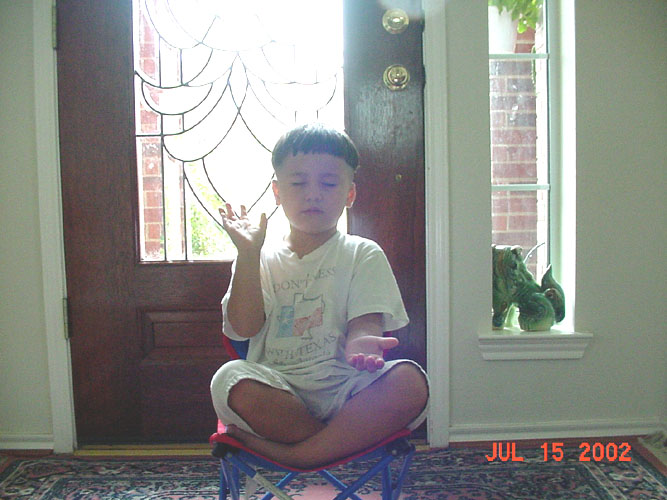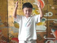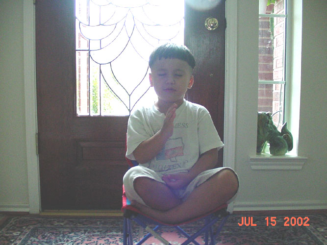 童心纯真:小弟子炼功发正念(图)