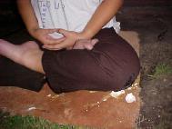 美联社图片:6月30日,法轮功修炼者在举行烛光守夜活动时打坐,抗议江泽民对其成员的迫害。有90名以上来港参加抗议的法轮功成员被禁入境。