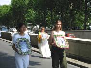 一位旅居法国的中国民主人士用双手捧着我们送给他的一朵手工莲花,就象捧着一个很珍贵的礼物,走在我们的队伍中,让人感动。