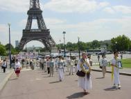 一位记者很高兴能在游行结束时在铁塔对面的人权广场上看到法轮功学员集体炼功,马上拍摄了下来。