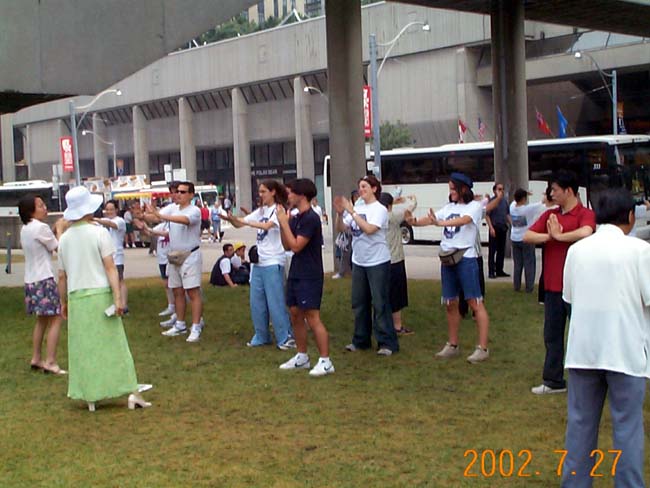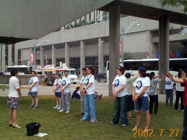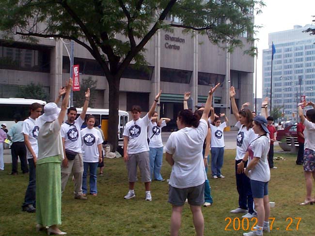 多伦多的学员抓住这个大好时机,向各国青年洪法讲真相,印制了多种文字的小传单,将法轮大法提倡真、善、忍,以及紧急呼吁各国政府和人民,帮助停止江泽民政权对法轮功的迫害的信息传递给各国人民。