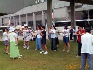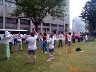 周末大家更是走上街头,集体炼功讲真相,很多青年被大家炼功的场景所吸引,前来学功者络绎不绝,学员们忙前忙后的教他们炼功。