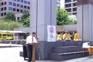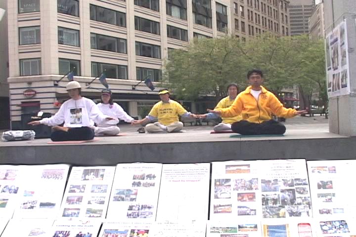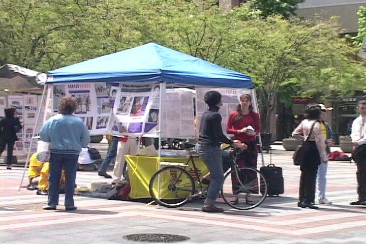 活动中学员们展示了正法之路图片展及法轮功在中国被残酷迫害的图片事实。此次重点展出的图片是被迫害的大陆学员所揭露于世的他们在监狱中所受的各种酷刑,包括老虎凳、竹签扎指等。