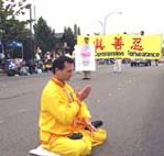 第8个游行-湖城“先锋日”游行,是美国西北地区最大的表演性游行之一。学员们齐心合作,金光闪闪的大法横幅,整齐的队形,悠扬的炼功音乐,第一和第五套功法的表演,加上三位身着传统中国服装的女大法弟子,向世人展示了大法和大法弟子的风貌。法轮功游行队伍荣获了成年方队表演组的第一名奖。