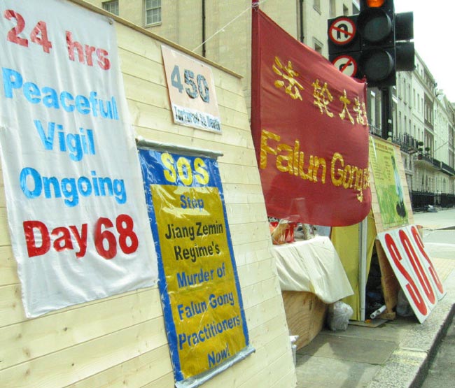 英国弟子再聚伦敦抗议江氏镇压延伸至香港(图)