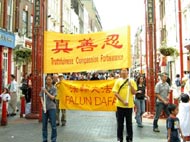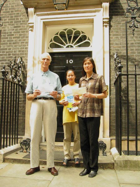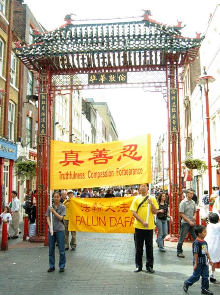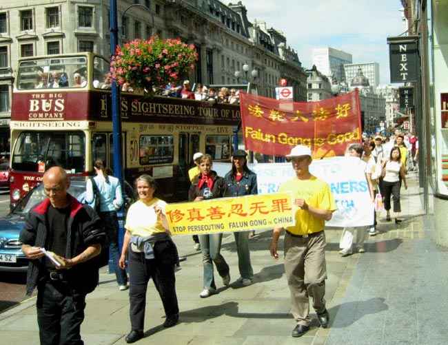 弟子们游行到英国首相府唐宁街10号及英国外交部大楼,分别向英首相布莱尔及外交部递交了请愿呼吁书。在普度、济世的音乐中,弟子们走过伦敦牛津大街、皮克迪里广场、白宫国会大厦、鸽子广场及中国城,一路行走一路向行人、游人散发关于香港政治审判真相的资料。