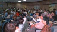 第二场教师法轮功研习于八月六、七日在新营市新民国小举行,校长慷慨地把耗资三千万的音乐馆免费提供当研习场所。研习期间虽然天气不稳定,刮大风且大雨滂沱,也浇不熄大家参加研习的决心。首先校长致词欢迎来自各个学校的校长、主任、教职员工及眷属前来参加法轮功的研习,他还说他观察法轮功学员从接洽办理研习开始至昨天的布置会场,他深受感动,他也要开始修炼了。教育局督学除了来听专家学者演讲之外,在致词时特别指出,法轮功不只是教人向善,做好人而已,真正的还是要修心,真、善、忍是宇宙的法理,这么好的功法在全世界已经大受欢迎,只有中国大陆某些小心眼的官员在禁止、抹黑,这些迫害者将自食恶果,王督学期勉各位教师们好好学习,不但自己身体健康,也回去告诉学生及他们的家长说法轮功带给我们的好处,教他们炼功,使学校更祥和、社会更祥和。王督学说他的工作虽然忙碌,但他也不忘每天学法、早起打坐。