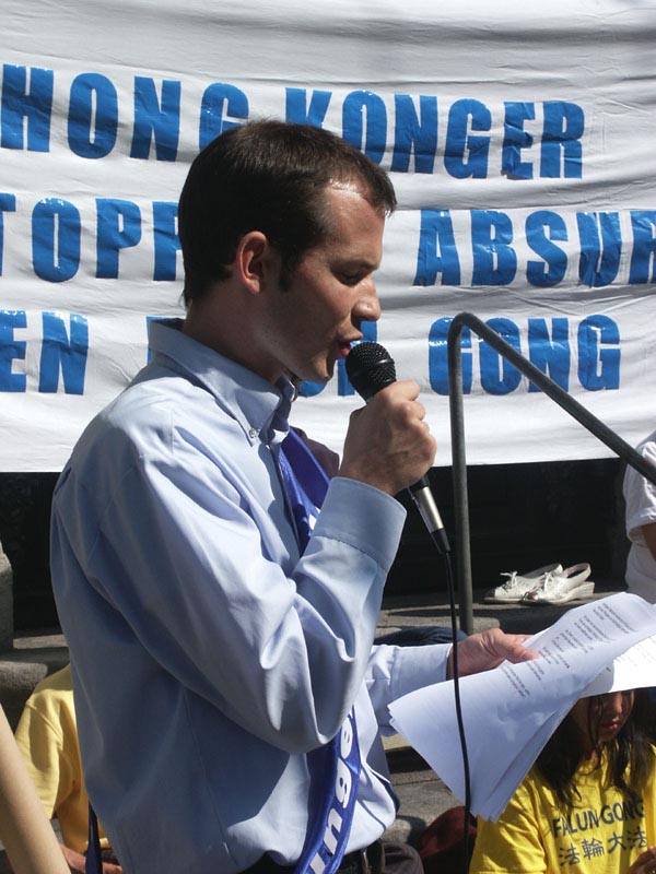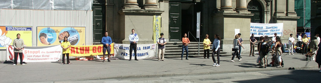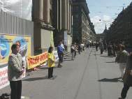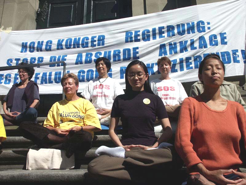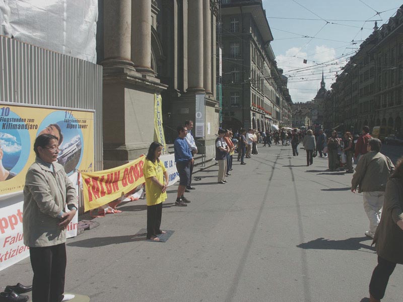 瑞士大法弟子在首都伯尔尼举行新闻发布会揭露香港政治审判真相(图)