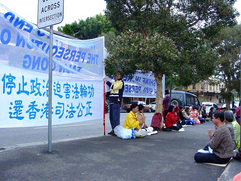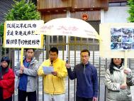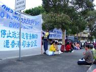 法轮功学员代表在中领馆前就香港政治诬告案及错误判决宣读了声明。声明全文如下: