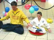 一位有一双儿女的中年妇女非常喜欢东方文化,觉得法轮大法非常好,主动提出要联系给儿子教中文的老师,让学校里的所有孩子都有机会学到五套功法。有位还穿着武术炼功服的小男孩,看到学员炼功,征得妈妈同意后,马上请一位西人学员教他打坐,还能双盘,学得非常认真。他妈妈也表示会带他去炼功点学功。