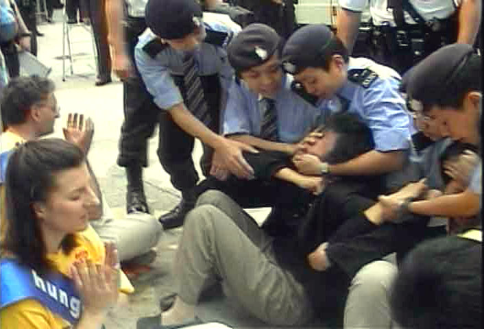 今年3月14日,包括四名瑞士人在内的16名法轮功学员在香港中联办大楼外的街边进行和平请愿活动时被香港警方使用暴力拖走,随后遭到香港警方所谓“阻街”、“袭警”的检控。此案6月17日开庭,正在审理之中。