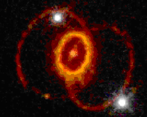 超新星爆炸是质量在我们的太阳10倍以上的恒星的归宿。这些大质量星体在一千五百万年内烧完它们的热核燃料后在一秒钟内迅速坍缩,接着反弹成为超新星爆炸。
