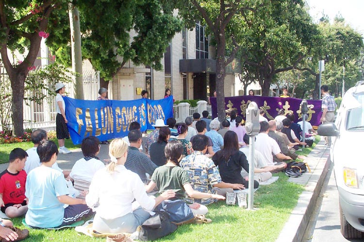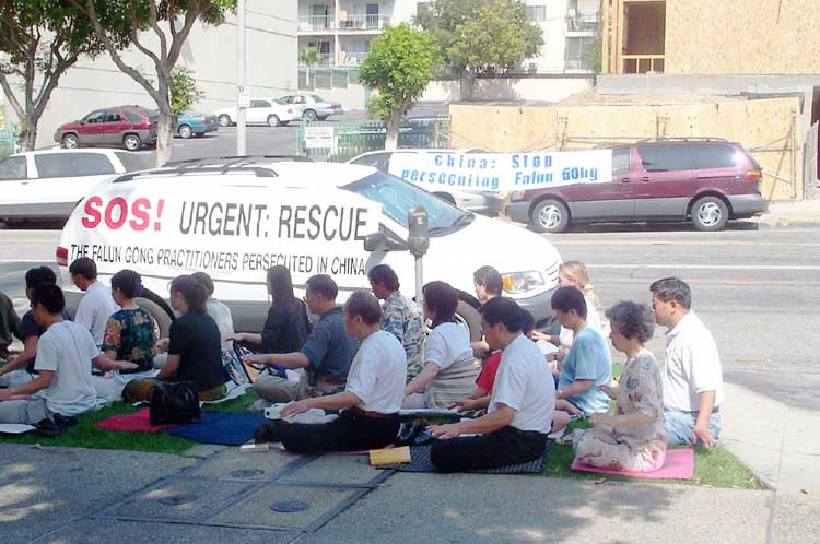 【明慧网2002年8月5日】八月三日下午,洛杉矶和圣地亚哥地区大法弟子在洛杉矶中领馆前召开新闻发布会,向媒体披露发生在香港的针对法轮大法学员的迫害事件。自由亚洲电台、大纪元时报到场进行了采访。