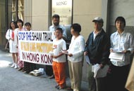 本着对香港前途的关切,学员们在办事处门前,心态祥和地向过往人士和各家媒体讲述16名法轮功学员在香港被无理起诉的真相。自由亚洲电台、湾区之声电台、大纪元时报等多家媒体到场采访。