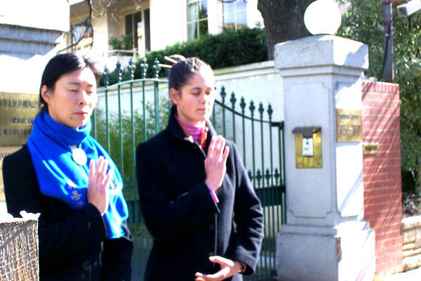 【明慧网2002年8月7日】8月6日上午,澳大利亚墨尔本大法弟子在中国大使馆外静坐,抗议中国江氏集团迫害香港人民的民主和自由权,呼吁香港停止对法轮功学员的政治诉讼。