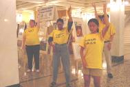 由于南达科达州地广人稀,人们与外界的接触比较少,加上大法传到这里比较晚,所以大多数人对大法了解不多。但是任何困难也阻挡不住大法弟子“用慈悲去洪法与救度世人”的脚步。在申请过程中,有关人员虽然答应给我们三天时间办展览,但不允许展出学员受迫害的图片。大家交流后都意识到这是邪恶的干扰,于是一边发正念,一边用常人的理给有关人员讲清事实真相,比如迫害的图片大部份是记者照的,而且都已经发表,这场迫害完全是邪恶的,已受到全世界善良人们的一致谴责,等等。最后问题顺利地解决了。通过这件事,学员们又一次体会到发正念和讲真相的威力。