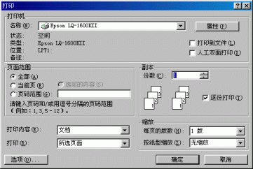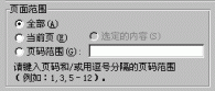 这个功能是使在打印时有的选择打印哪些页,和不打印哪些页,第一项“全部”,是指这个文件中所有的页都打印;第二项“当前页”,是指只打印现在光标所在位置的那一页,其它页则不打印;第三项“页码范围”,是指按在这项后面的文本框中输入的页码进行打印,如果要打印的页码都不连续,每个页号后面有逗号分隔,如:1,3,5,如果中间有些页是要连续打印的,则在起页号间用“-”(减号)分隔,如要打印4到9页,则:4-9,即可。