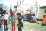 星期天一早,我们就开始在指定地点布置场地。这个场地离主要活动地区比较远,不十分理想,但正当我们的布置工作快结束时,一位组织人员走过来说她可以给我们一个更好的场地。我们过去一看,那个场地非常理想,离舞台很近,很多重要活动都在那儿举行,就立刻决定把我们的展台迁移过去。当天,所有来舞台听音乐看舞蹈的人群都能看到大法展台,索取资料也很方便。
