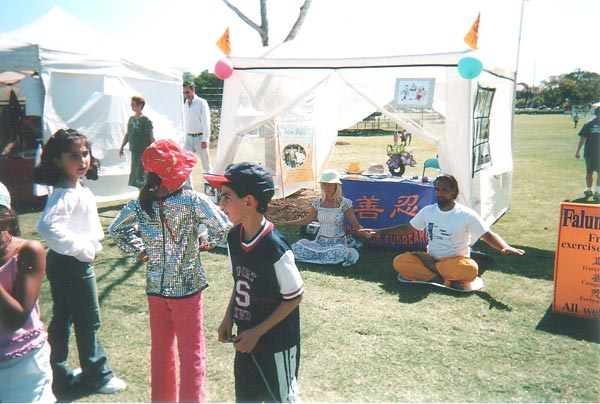 这真是一个多元文化节,来自各不同种族的人流不断从我们的展台前穿过,有的人停下来学功法,有的向学员了解法轮功和江氏对法轮功的迫害情况,很多人都拿了大法资料,并在请愿书上签名。这次活动使我们得以向以前没接触到的人群洪法。
