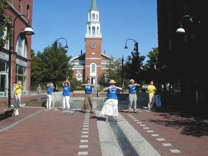 【明慧网2002年9月13日】从星期五至星期一(9月6日至9月9日),美国新英格兰地区的法轮功学员向数千名新罕布什尔与佛蒙特州北部城镇的居民展示了有益于身心健康的法轮功功法。