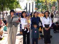 中午12点,来自大纽约地区的法轮功学员与多位受害学员家属举行了营救被迫害的法轮功学员新闻发布会。发布会由来自布鲁克林的娜丁女士主持。法轮大法信息中心的发言人亚当宣读了新闻稿。亚当在发言中指出:这次新闻发布会是全美营救受迫害法轮功学员家属活动的一部份,呼吁联合国及美国社会对此事的关注并希望布什总统在与江十月份会面时严肃提出停止对法轮功的迫害。