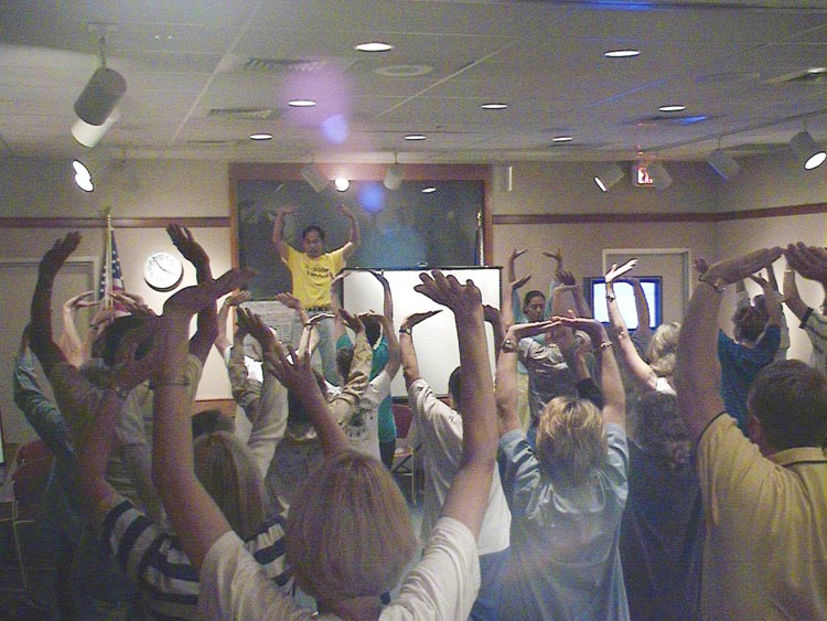 “法轮大法好”这首歌简单易唱,很容易上口。有一次和几个新的补习同学走在一起,因为还不熟悉,一时无语,我就自己小声地哼唱起“法轮大法好”来,唱第二遍时,旁边的一个同学就跟唱第一句,还冲我一乐,主动地问起法轮功的事,我也随机向周围几个同学讲真相。我记得有位同修也说过她进入聊天室时先唱歌,得到很多掌声,之后讲真相效果很好。