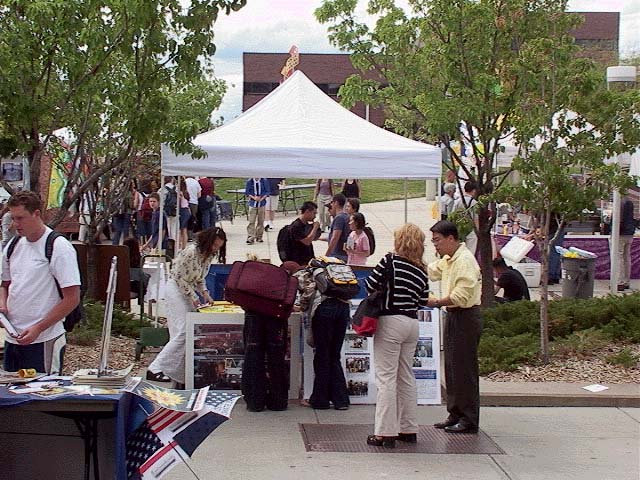 法轮功学员申请到一个摊位,法轮功之友也申请到一个摊位。在热闹市口左右各一个摊位,在两天内吸引了众多师生及民众了解法轮大法及在中国被迫害的真相。一位宗教研究系博士后导师说她一直很关注法轮功被迫害情况,并请法轮功学员到她的课上介绍大法。在签名过程中,当得知他们的签名将帮助数以万计的在中国被迫害的法轮功学员时,很多学生很激动,眼中流露着对自己正义之举的自豪。这次活动征集到约一千个签名,发出三千多份传单,使数千人了解到大法的真相。