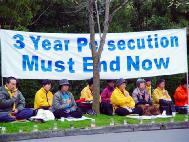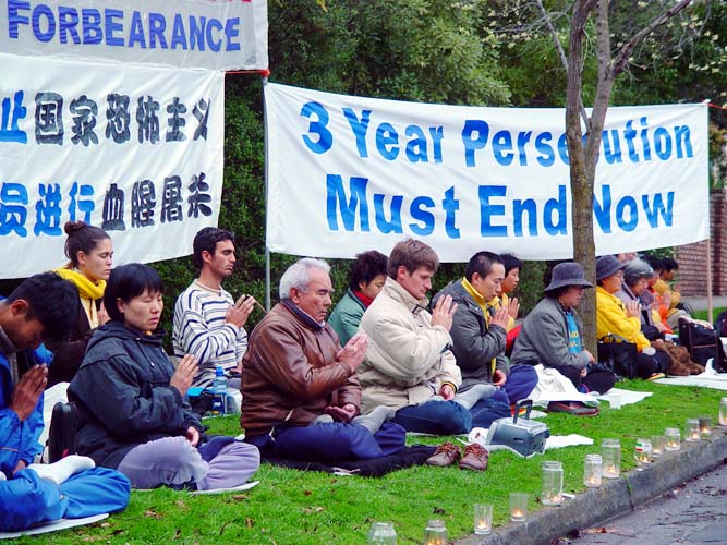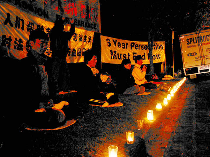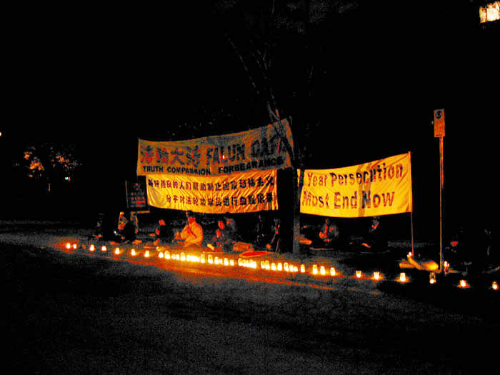 隔一会又慢慢走过来一位中年西人女士,对我说:“我天天为你们法轮功学员祈祷,愿中国的法轮功学员早获自由。江XX真是一个撒旦魔,它是世界上最邪恶的魔鬼,迫害这么善良的人!愿上帝保佑你们。”然后她恭恭敬敬地对着被迫害致死的大法弟子的遗像跪下,双手合十。最后主动在我们呼吁营救加拿大人在中国的亲人的明信片上签了名。临走时,她又一次大声说:“江XX真是一个邪恶的魔鬼!”