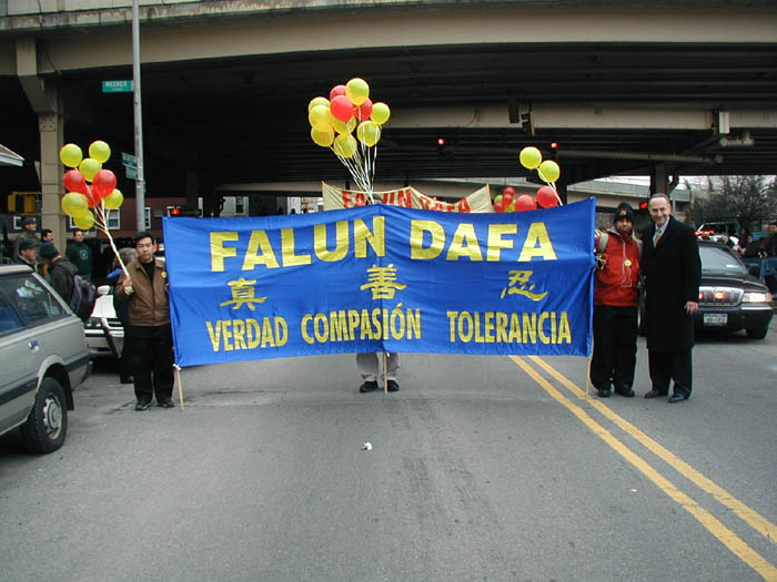 纽约联邦参议员查理-舒曼、布碌伦区长马蒂-马克维兹和其他社区官员也到场助兴。联邦参议员查理-舒曼和随从在游行中就走在法轮功队列前,并和法轮功队列合影。布碌伦区长马蒂-马克维兹向法轮功学员打招呼。