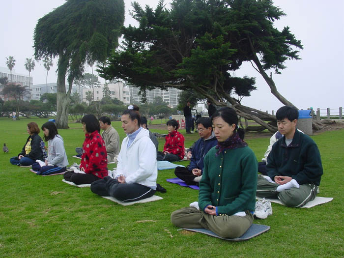 在90年代的那段日子里,法轮功学员们无论刮风下雨,严寒酷暑,坚持户外锻炼。他们在公共场所的集体炼功,成了许多地方清晨的一道奇特景观。