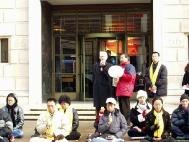 【明慧网2003年1月15日】自1月12日开始,英国大法弟子分别在伦敦中国大使馆、曼彻斯特领事馆前进行3天的和平请愿。13日在伦敦、曼城两地又分别举行了新闻发布会,揭露江氏政治流氓集团对法轮功的野蛮
