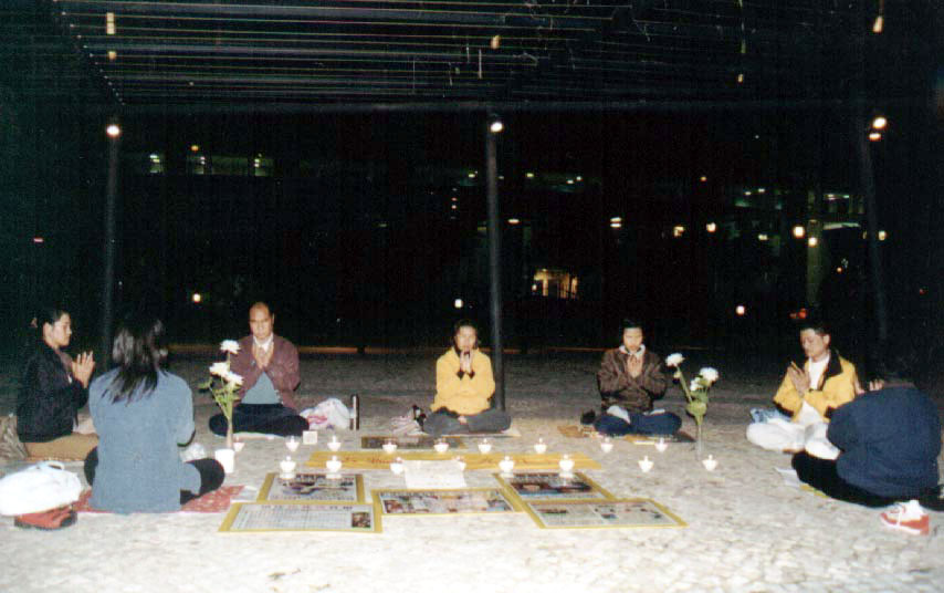 13日、14日连续两晚,澳门学员在中联办对面公园举行烛光晚会,悼念被迫害致死的大法弟子。