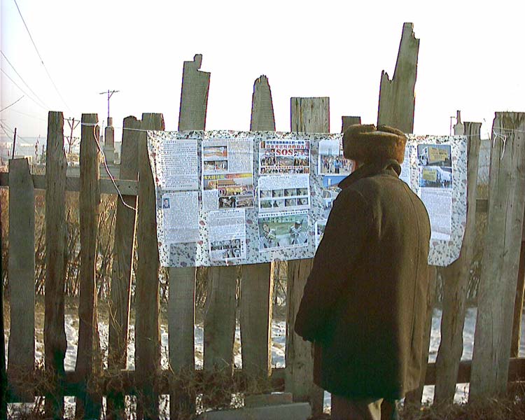 图片:大陆某地大街小巷的真相资料和驻足观看的人们