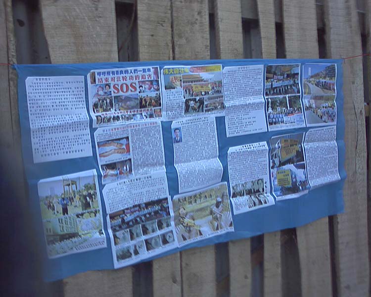 图片:大陆某地沿街悬挂的讲真相横幅