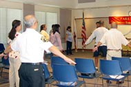 今年4月法轮功学员在联邦法院伊利诺伊州北区法院对面的联邦广场上举行活动