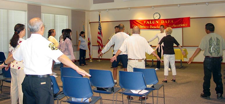 9月27日,澳洲昆省大法弟子到布里斯本市中心乔治王广场洪法,讲真相。一组组从大陆过来的游客惊奇的瞪大眼睛看着我们,嘴里不停地说:“法轮功!法轮功!”有人走近仔细看着我们的展板,有的则接过我们的真相资料和光盘不住的说:“谢谢!谢谢!”一位学员向游客说明法轮大法在全世界都是合法自由的,一名游客说:“应该这样”。学员和两名大陆来的留学生交谈时,开导他们如何适应澳洲的生活,并适机地谈到法轮功真相,使他们改变了初衷,欣然接受了真相资料和光盘,表示要上网了解法轮大法。一群大陆游客站在远一点的地方观看学员炼功,一位老人模仿着冲灌的动作做着,另一位中年人对着大伙儿说:“快看那边那一位是中国人,这边这一位是洋人啊!”