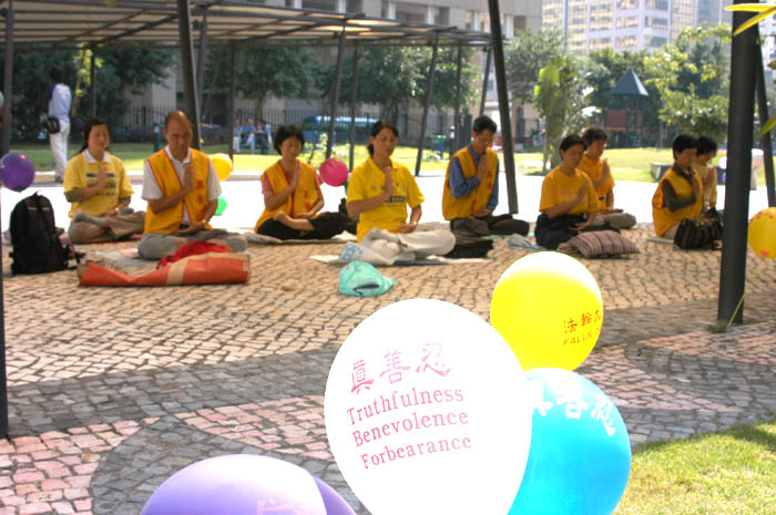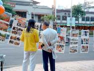 很多中国人在经过这里时看到竟然有这么多的白人也在炼法轮功,感到非常惊讶,我们发现他们在观看了展板上受迫害的图片和资料后再给他们讲真相就不是那么困难了,很多人都能认真的听下去并都能去冷静地思考了,有的说:“我早就在心里怀疑大陆宣传的对不对,如果炼法轮功真的会导致自杀、自焚,就不会有这么多的外国人炼了。”一位抱小孩的妇女主动走上前来索取真相资料,她说她很清楚在大陆没有真正的言论自由和信仰自由,她绝不会相信江泽民对法轮功的造谣宣传,并说她在国内的亲戚们很多都在炼法轮功。她对江××在西班牙被起诉表示支持。