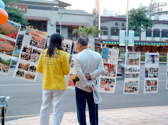 有一位瑞典白人学员用熟练的中文对几位正在观看真相图片的中国人说:“你们好!我是炼法轮功的。我是瑞典来的。江泽民对法轮功的宣传都是造谣的。我炼了8年法轮功,身体好,精神好,家庭和睦……”他的流利的中文和祥和的面容立即博得了这几位中国人的好感与信任,他们说:“我们相信你的话。”