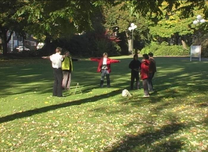 当地的法轮功学员得知消息后也报名租了一个展台,除了在展台边向参观者介绍法轮功及讲真相外,还在大厅外的草坪上进行义务教功。博览会的组织者也来到我们的展台向我们了解法轮功,并随后在展览大厅的大喇叭中对法轮功作了介绍,推荐有兴趣者参加法轮功义务教功。