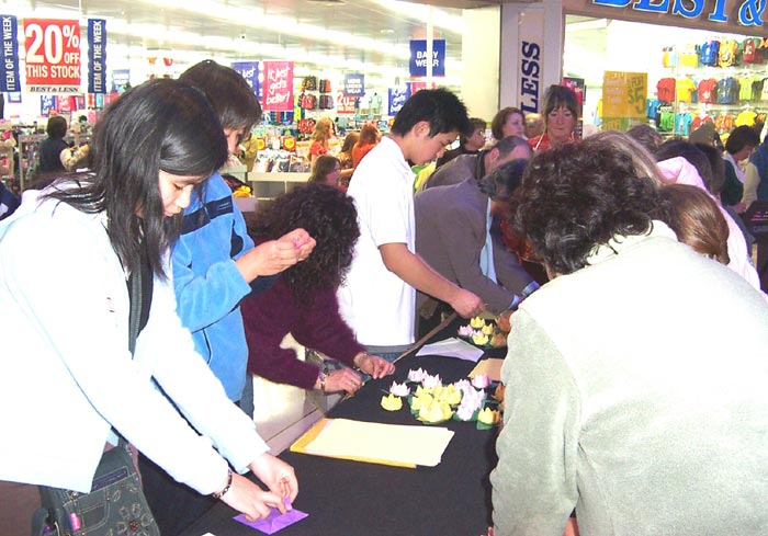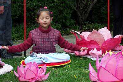 活动主办者说:“今天,我们在这里将教会孩子们如何制作象征着纯洁与美丽的纸荷花,同时也将展现出真、善、忍及人类对美好的不断向往与追求。并通过这一活动向有不同文化背景的人倡导宽容和同情心以推动世界的和平。”