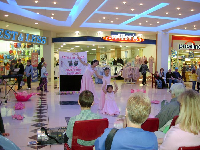10月2日,“和平的花瓣”大型儿童活动首先在墨尔本的戈兰.威吾勒商业中心举行。联邦议员拜恩(Anthony Byrne)为这次活动发来了贺信,一群来自明慧小学的孩子带来了莲花舞、敦煌舞和儿童服装表演等节目,展示了他们折叠的象征着和平和圣洁的纸荷花,并教给前来参与这一活动的儿童及其家长如何折叠纸荷花。