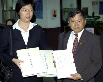 ![]() 台湾法轮大法学会理事长张清溪、律师团代表,前往高等法院「刑事收状处」递状 |