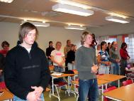 【明慧网2003年11月19日】2003年11月17日,两名瑞典大法弟子应邀来到莱荣市的高中学校,先后在宗教信仰课和科学研究课上介绍法轮功。