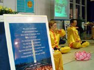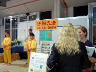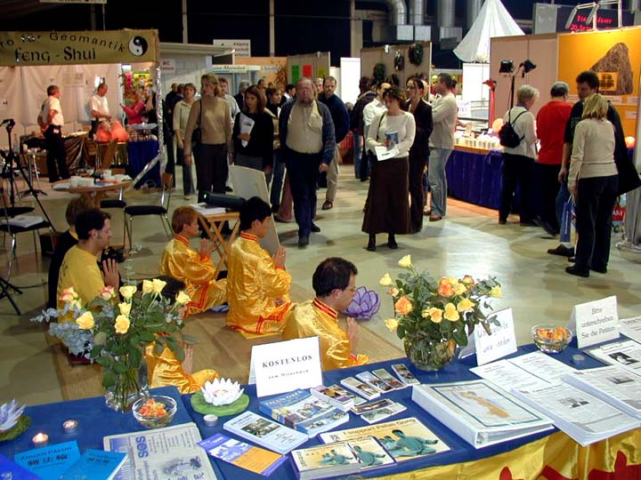 【明慧网2003年11月22日】11月14日至16日,奥地利大法弟子应邀参加了在维也纳新城举办的一年一度的健康博览会。这已是大法弟子第二次应邀参加。今年博览会组织部门还专门安排大法弟子举办了三场各30分钟的功法演示。祥和的功法深深吸引了众多的与会者,许多人纷纷询问如何学功修炼。当观众们了解到江氏集团对大法弟子的残酷