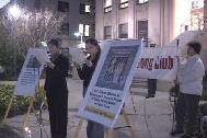 在烛光下,演讲持续了大约一小时有余。活动结束前,主持人王靳威说,“今晚的烛光守夜即将结束,但是我们的营救李祥春和刘成军的活动不会停止,直到他们被无条件释放;我们营救在中国受迫害的所有法轮功学员的活动不会停止,直到在中国的所有法轮功学员被无条件释放。我们相信,没有任何迫害能真正的把法轮大法打压下去,因为真善忍永存人们心中,因为真善忍是宇宙的真理!”