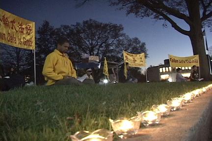 法轮功学员们每个人带来的真象资料几乎全部发完。当地的华人媒体大纪元时报等作了采访,美利坚大学的校报“鹰报”还特意派摄影记者来纪录这烛光映照的感人一幕。