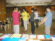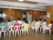 我们到基督教和天主教教会教功,每次都有20-30人学,我们人手不足,学员们分头进行,他们非常感谢我们,希望我们能常去。到台湾工商协会教功时,理事长很开心,问能为我们做什么。得知他们每个月有聚餐活动,请他发大法真相资料,欣然同意,我们说你真是做一件很好的事。又得知周六有妇女会,但我们是周五的飞机返台,为了不错失任何一个有缘人,我和另一位同修留下,当天妇女会是合唱团,有30多人学功。